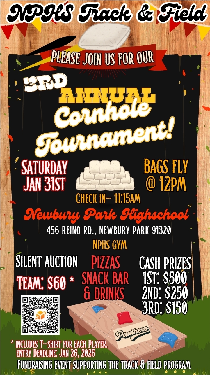 February 7, 2026 is our annual Cornhole Tournament and Fund Raiser! **